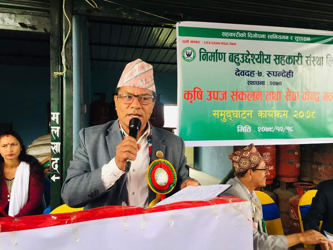 सुरज भट्टराई, देवदह // रुपन्देही देवदहमा निर्माण बहुउद्देश्यीय सहकारी संस्थाको भवन उद्घाटन गरिएको छ। देवदह ०८, पाकडीमा नवनिर्मित कृषि उपज संकलन तथा सेवा केन्द्र भवनको सनिवार एक कार्यक्रमका बिच लुम्विनी प्रदेशका सभामुख तुलाराम घर्तीले उद्घाटन गर्नुभएको हो।