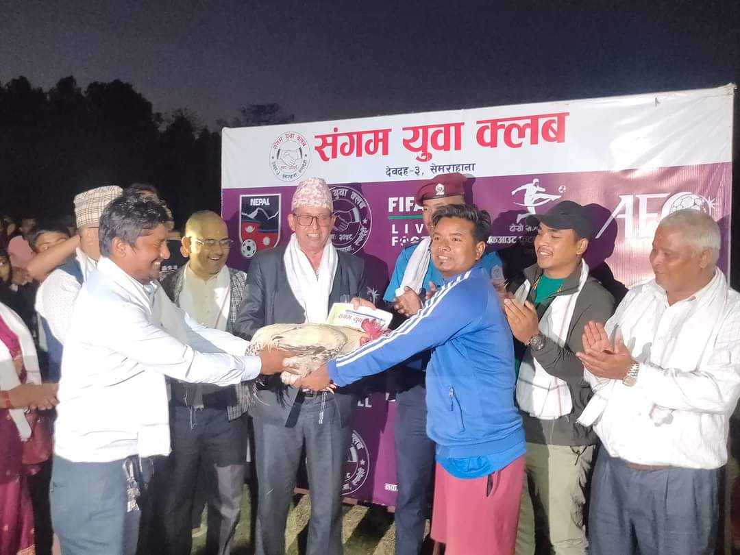 सुरज भट्टराई , देवदह // रुपन्देहीको देवदह नगरपालिकामा जारी दोस्रो संगम कप नक आउट फुटबल प्रतियोगिताको उपाधी सुनवल-८ ले जितेको छ। देवदह नगरपालिका वडा नं ४ स्थित सृष्टि सामुदायिक वनको खेलमैदानमा भएको फाईनल खेलमा भलुहि एफ.सी लाई हराउँदै सुनवल-८ ले प्रतियोगिताको उपाधी जितेको हो।