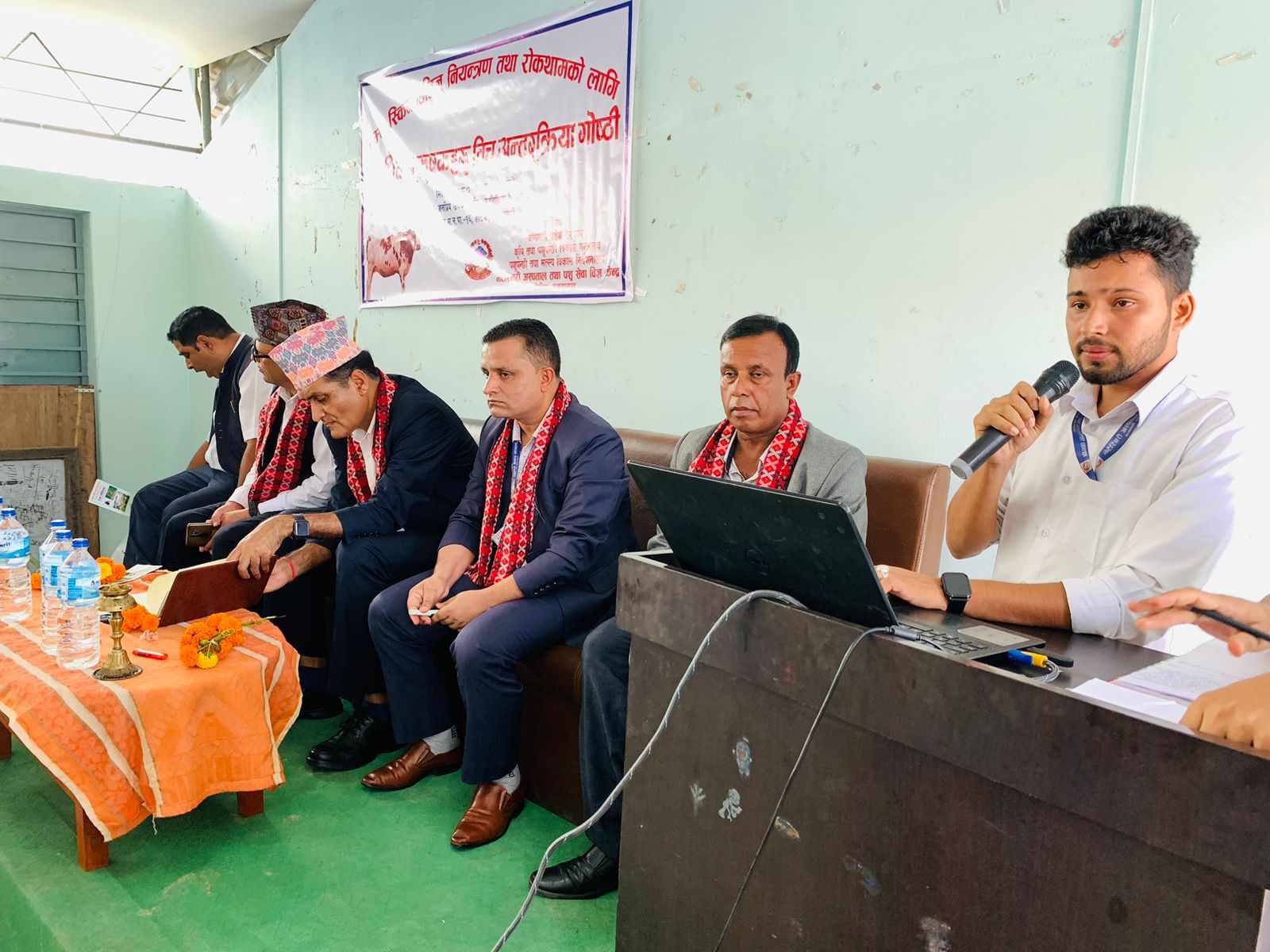 डा. प्रदिप बर्तौलाको स्वागत मन्तव्य बाट सुरु भएको कार्यक्रममा पशु सेवा अधिकृत डा. विमोचन पौडेलले कार्यपत्र प्रस्तुत गर्नुभएको थियो।