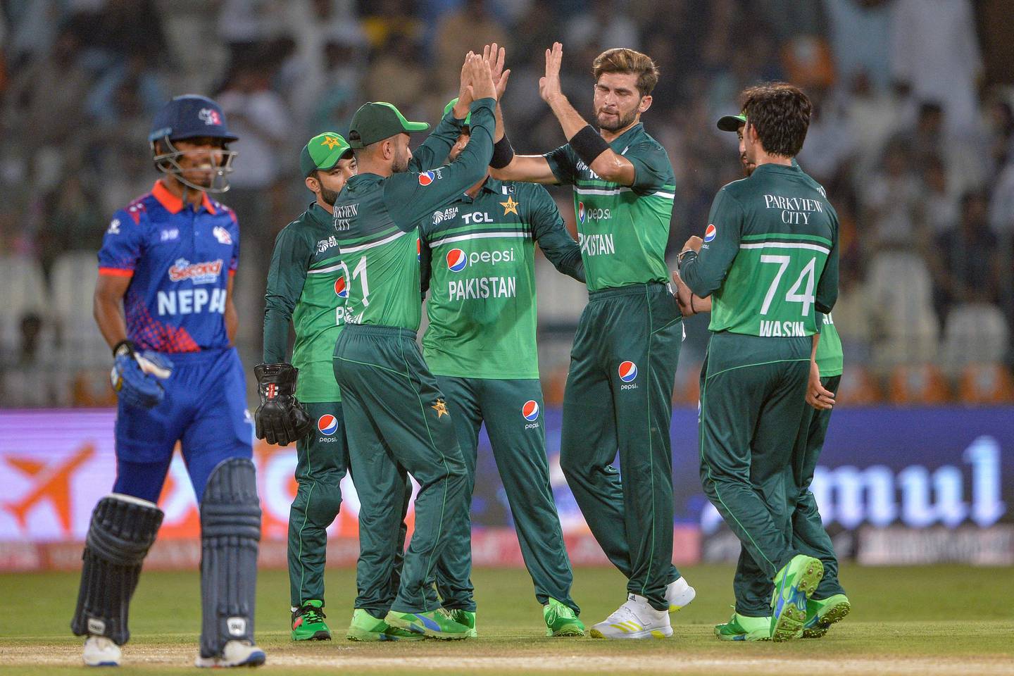 पाकिस्तानका सदाब खानले ४ तथा शाहिन शाह अफ्रिदी र ह्यारिस रौफले २/२ विकेट लिए। नसिम शाह र मोहम्मद नवाजले एक एक हात पारे।
