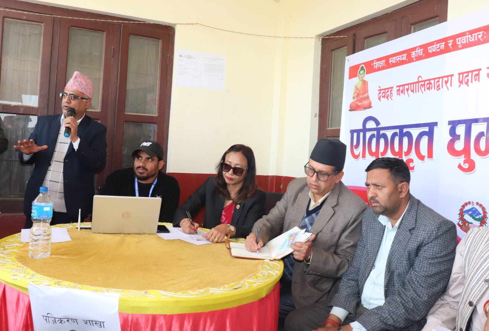 देवदह नगरपालिकाको उप प्रमुख विद्या लक्ष्मी गुरुङको स्वागत बाट सुरु भएको कार्यक्रममा देवदह नगरपालिकाको प्रमुख प्रशासकीय अधिकृत कृष्ण प्रसाद सापकोटा, वडा नं ११ को वडा अध्यक्ष दुधनाथ यादव लगाएतले आ-आफ्नो भनाई राख्नु भएको थियो ।