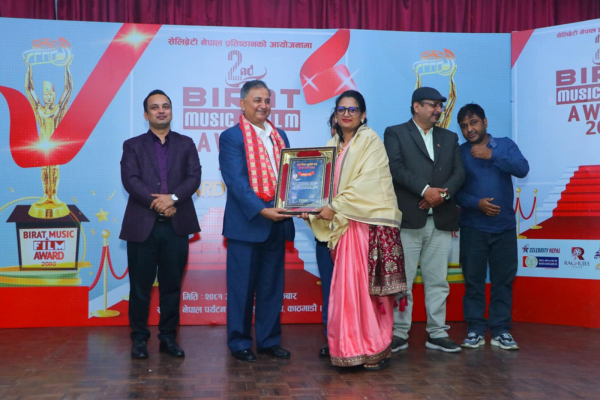 काठमाण्डौं । नेपाली गीतसंगीत र फिल्म क्षेत्रका कलाकर्मीलाई अवार्ड तथा सम्मान प्रदान गर्ने कार्यक्रम ‘विराट म्युजिक एण्ड फिल्म अवार्ड’ को दोस्रो संस्करण भब्य सभ्य रुपमा सम्पन्न भएको छ।