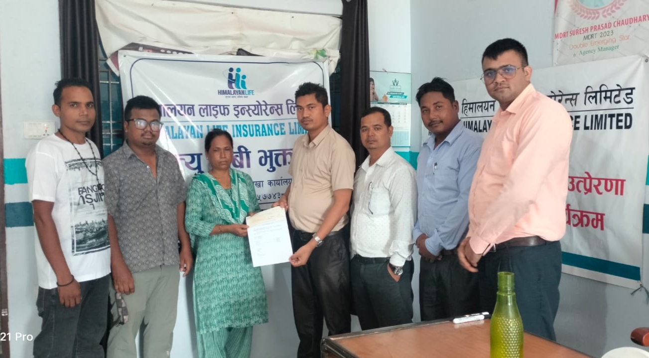 हिमालयन लाईफ ईन्स्योरेन्स लिमिटेडले सुनवल नगरपालिका वडा नं १ निवासी स्वर्गिय प्रेमनाथ कवरको परिवारलाई विमित वापत ३ लाख २५ हजार एक कार्यक्रमका वीच हस्तान्तरण गरेको खैरेनि शाखाको शाखा प्रमुख दिनेश चौधरीले जानकारी दिनु भयो।