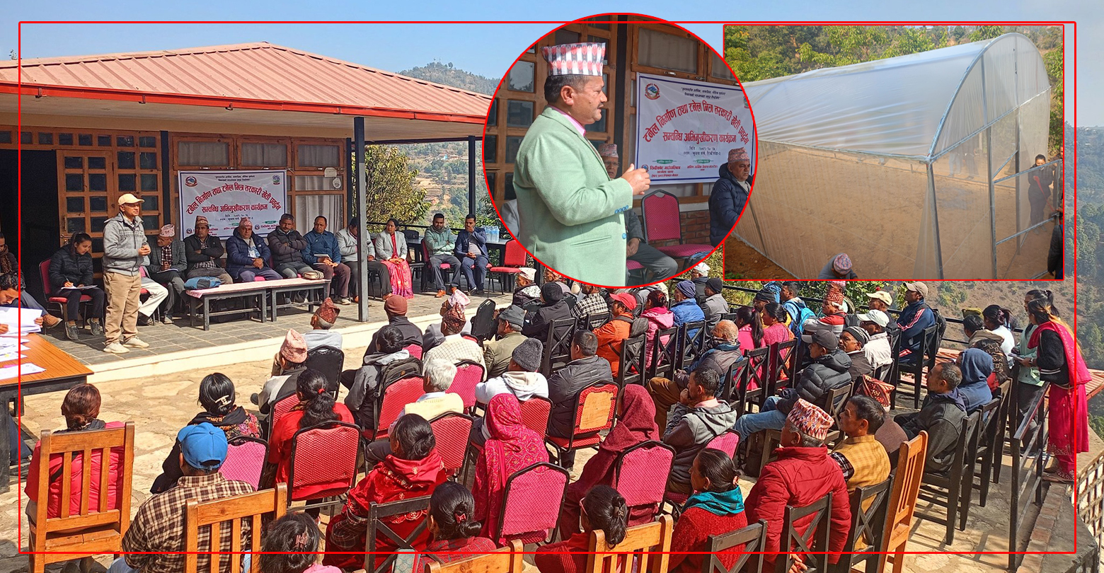 रिब्दीकोट कृषि परियोजना (RAP)अन्तर्गत रिब्दीकोटका आठै वडामा बन्ने टनेलको सम्झौता एबं अभिमुखिकारण कार्यक्रम तथा नमूना टनेलको रिब्दीकोट गाउँ पालिका अध्यक्ष नारायण कार्कीले उद्घाटन गर्नु भयो ।