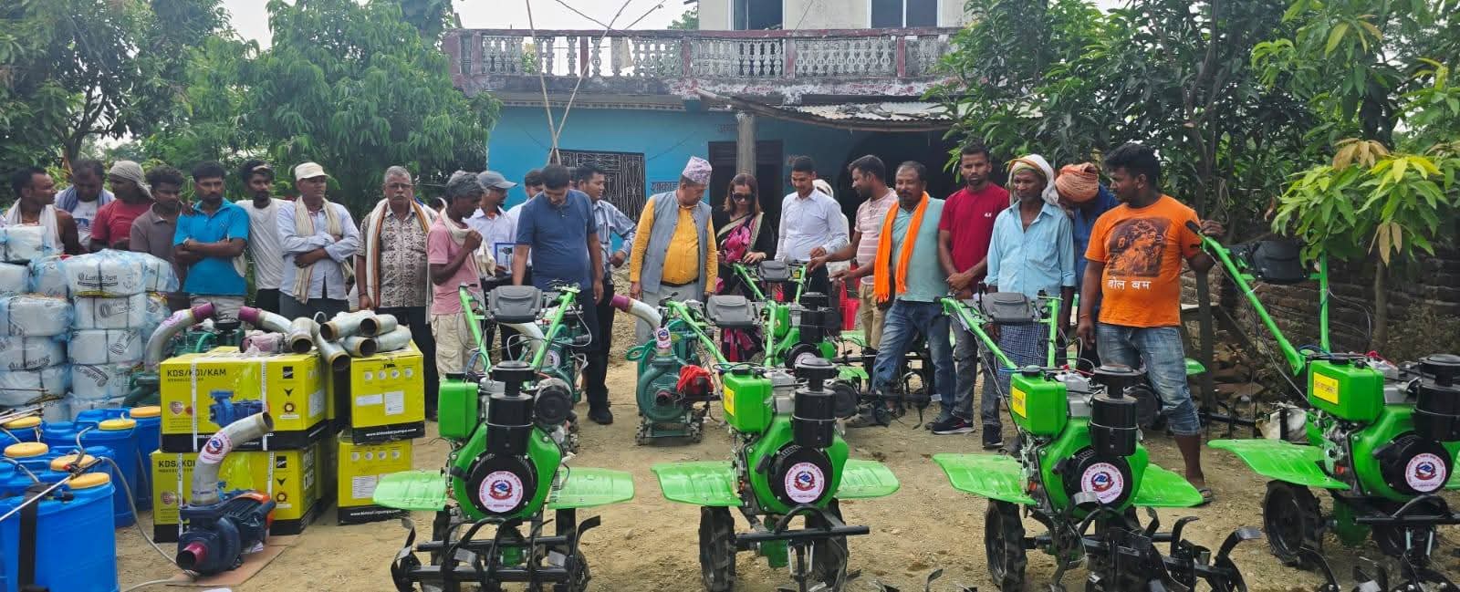 प्रधानमन्त्री कृषि आधुनिकरण परियोजनाको १२ लाख र कृषकहरुको १२ लाख गरी २४ लाख बरावरको कृषि औजार एक कार्यक्रमका बिच कृषकहरुलाई हस्तान्तरण गरेको हो । मिनी टेलर ७ थान, मोटर ७ थान, पम्पसेट ४ थान, स्प्रे टंकी १३ थान, पाईप १५५ फिट, डेलीभरी पाईप ४२० किलो कृषि सामाग्री हस्तान्तरण गरेको हो ।