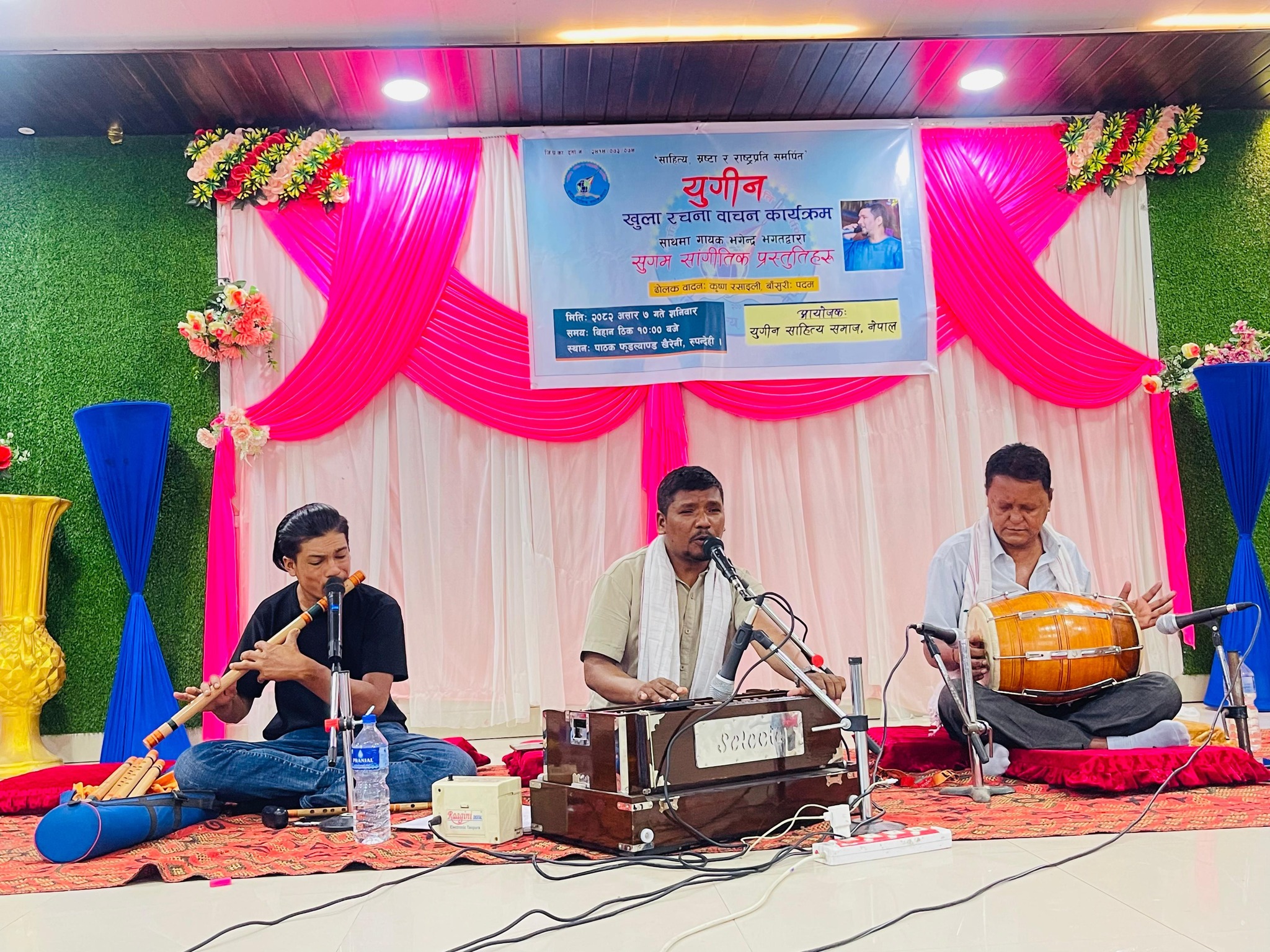देवदह। रुपन्देहीको देवदहमा युगीन खुला रचना वाचन संगै गायक भगेन्द्र भगतद्धारा सुगम साङ्गितिक प्रस्तुती कार्यक्रम सम्पन्न भएको छ । युगीन साहित्य समाज नेपालको आयोजनामा शनिबार देवदह-५ स्थित पाठक फुडल्याण्डमा कार्यक्रम सम्पन्न भएको हो ।