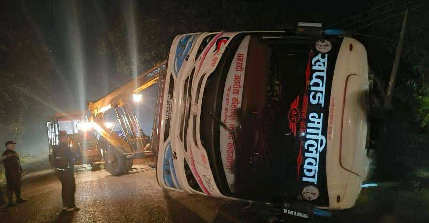 राति करिब २ बजे काठमाडौंबाट धनगढीतर्फ जाँदै गरेको बा.प्र.०१-००६ ख ८५ ०६ नं.को बस अनियन्त्रित भई सडकमा पल्टिँदा दुर्घटना भएको हो । सो क्रममा बसले एक पैदल यात्रीलाई ठक्कर दिएको र बसमा सवार यात्रुहरू घाइते भएका हुन् ।