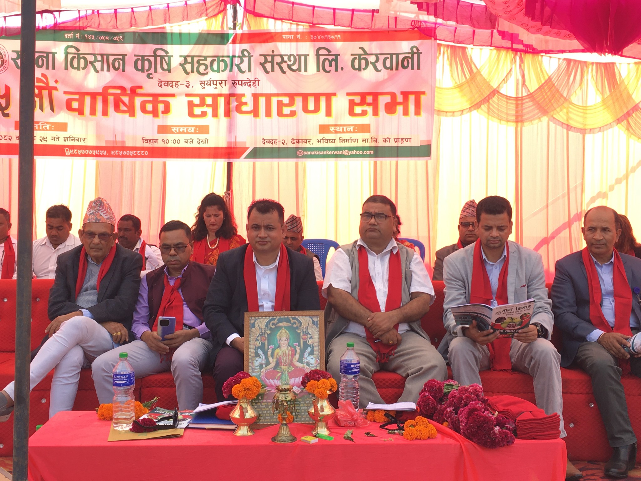 साना किसान कृषि सहकारी संस्था लिमिटेड, केरवानीको २५औँ वार्षिक साधारण सभा सम्पन्न भएको छ । शनिबार एक कार्यक्रमको आयोजना गरी संस्थाका अध्यक्ष दिपक पौडेलको अध्यक्षता र देवदह नगरपालिका वडा नम्वर ३ का अध्यक्ष यज्ञप्रसाद अर्यालको प्रमुख आतिथ्यतामा सम्पन्न भएको हो ।