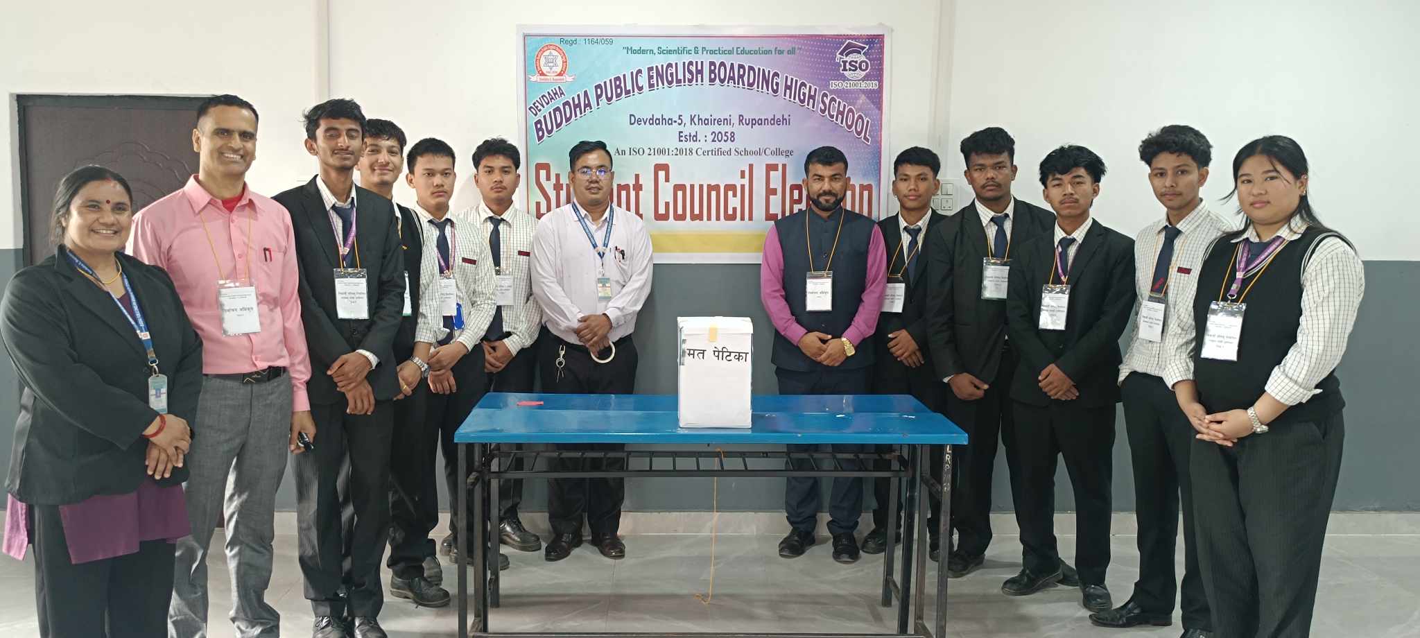 देवदह । देवदह-५ मा अवस्थित बुद्ध पब्लिक आवासीय माध्यमिक विद्यालयमा कक्षा ११ (+२) तर्फ विद्यार्थी परिषद् गठनका लागि नमुना मतदान कार्यक्रममार्फत निर्वाचन सम्पन्न भएको छ।