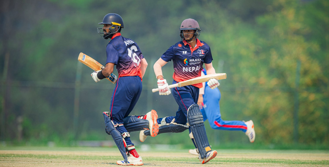 भीम सार्कीले २८, आसिफ शेखले १९, आरिफ शेख र गुलशन झाले १४–१४ रन बनाउँदा कप्तान रोहित पौडेल १० रनमै पभेलियन फर्किए। कुशल भुर्तेल र बसिर अहमदले १–१ रनमात्रै जोड्न सके।